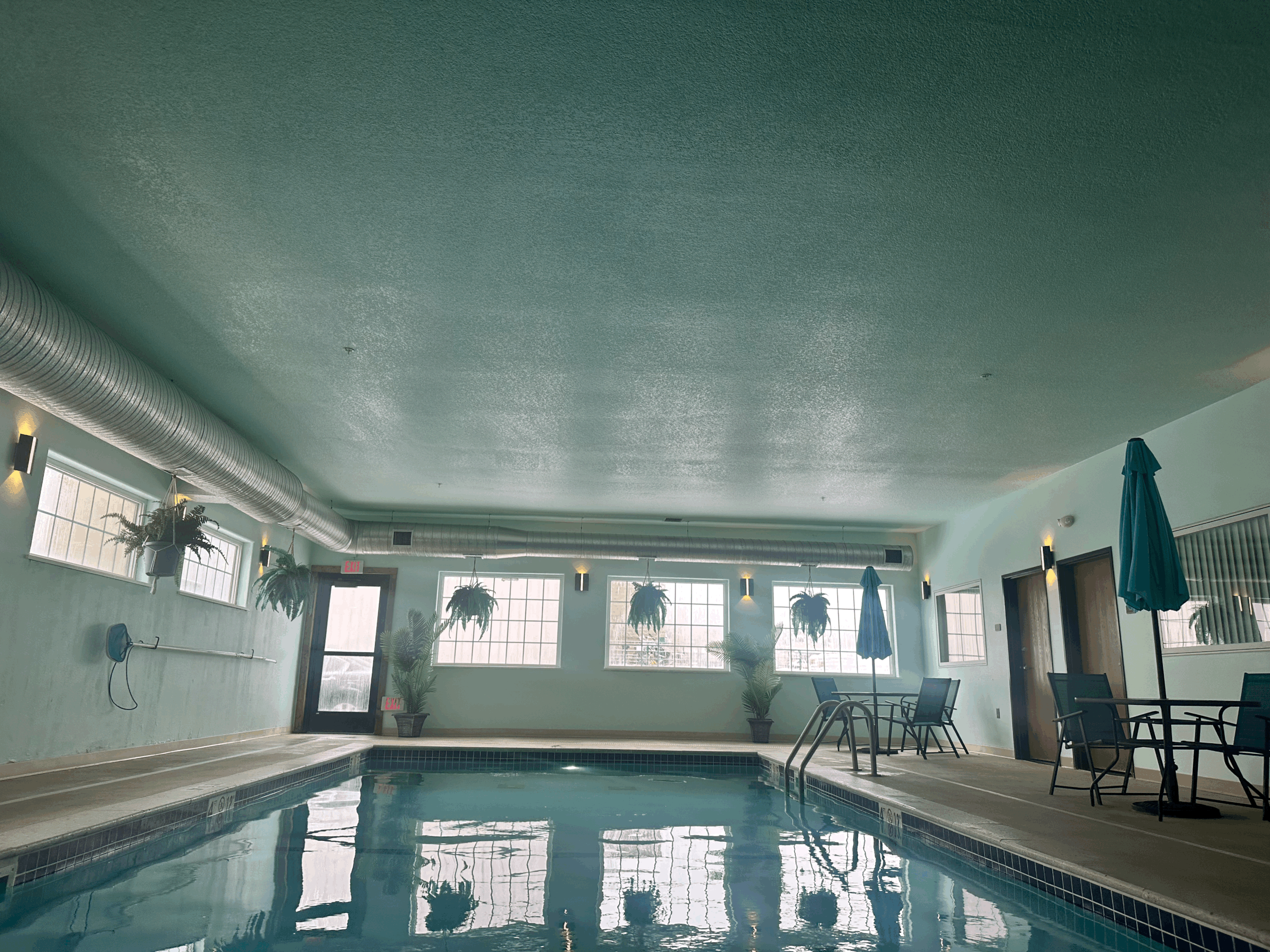 In the picture above and below, we see a ceiling above a pool that has been painted with a semi-gloss sheen.